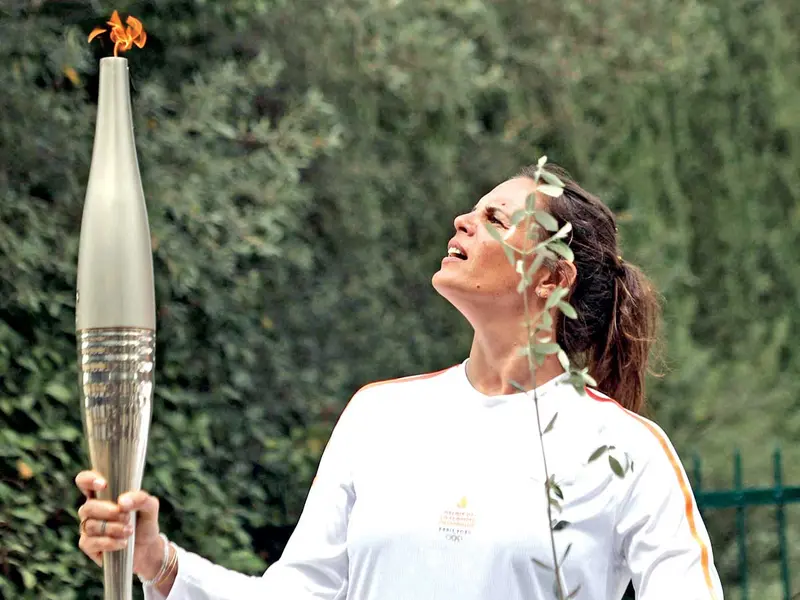 El nadador francés Florent Manaudou, poseedor de cuatro medallas olímpicas, entre ellas una de oro en los 50 metros estilo libre de los Juegos Olímpicos Londres 2012, fue el encargado de hacer descender del barco la antorcha con la llama, que inicia así un recorrido por Francia hasta la ceremonia de inauguración de la justa veraniega parisina, que se llevará a cabo el próximo 26 de julio.